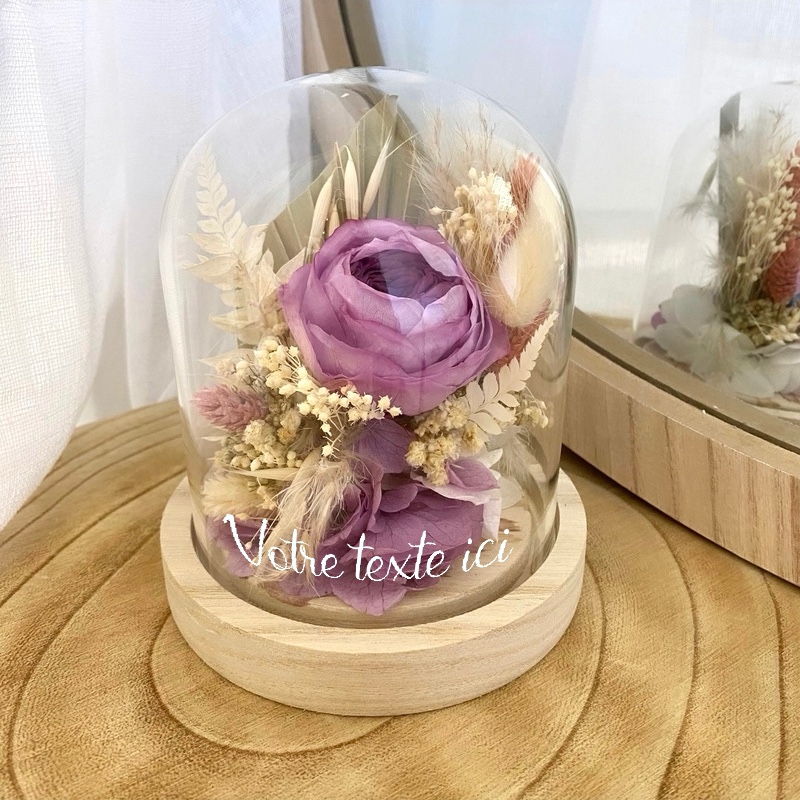 Chaque cloche est réalisée à la main avec de véritables fleurs stabilisées et séchées, de légères différences avec la photo peuvent exister.