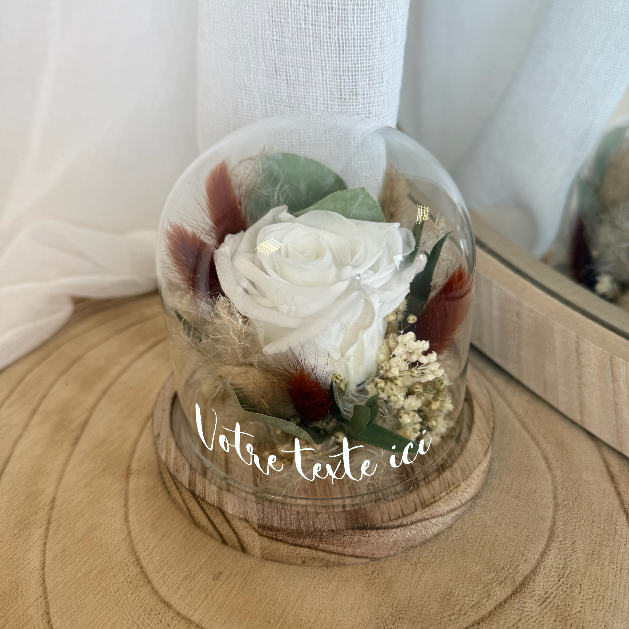 Chaque cloche est réalisée à la main avec de véritables fleurs stabilisées et séchées, de légères différences avec la photo peuvent exister.