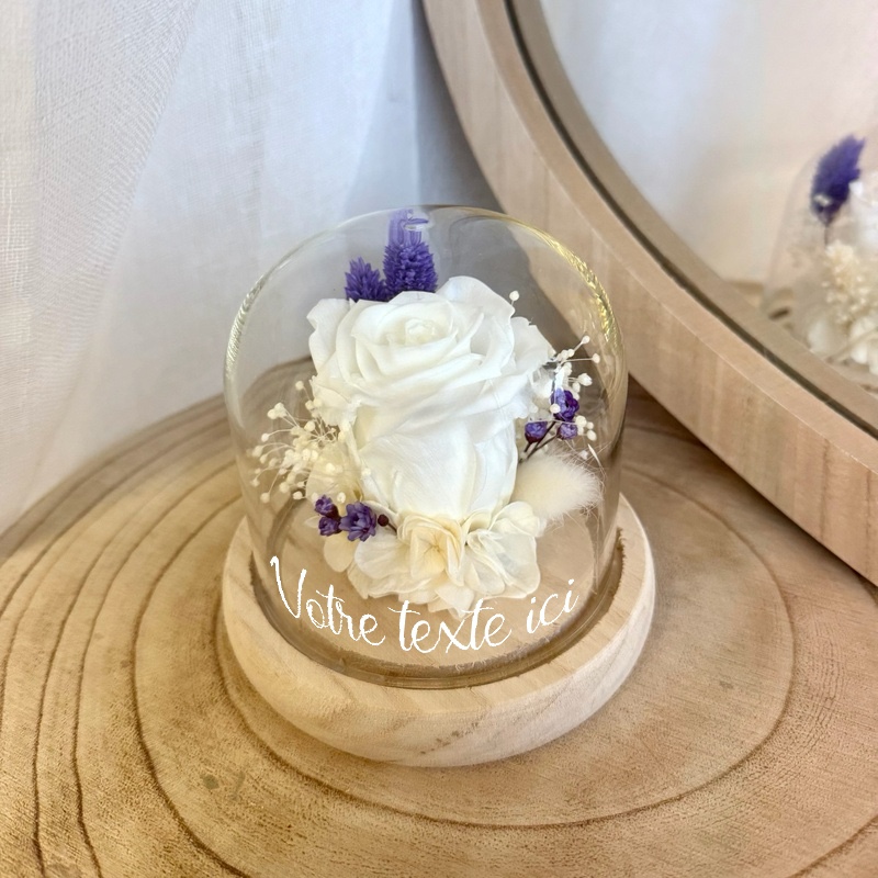 Chaque cloche est réalisée à la main avec de véritables fleurs stabilisées et séchées, de légères différences avec la photo peuvent exister.